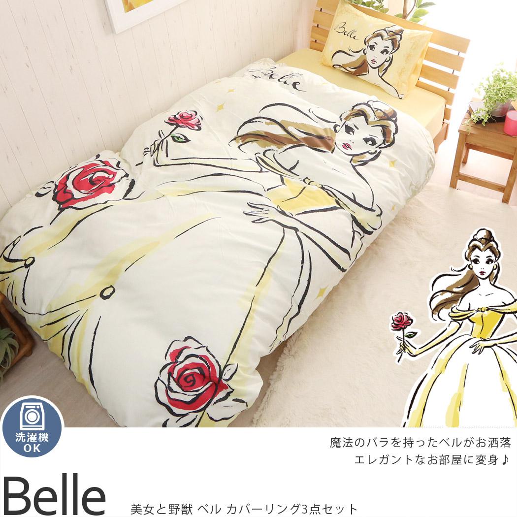 憧れのディズニープリンセスのお洒落な部屋に【美女と野獣 ベル カバーリング3点セット】- ラグ・カーペット通販【びっくりカーペット】