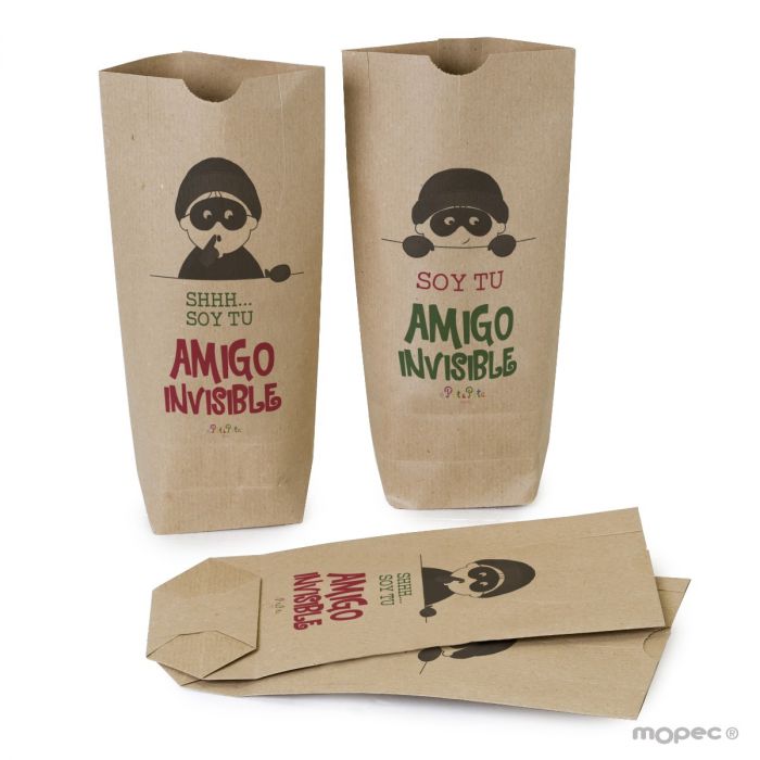 Bolsa de papel Kraft ©Pit&Pita® Amigo Invisible, disponible en varios idiomas |Mopec